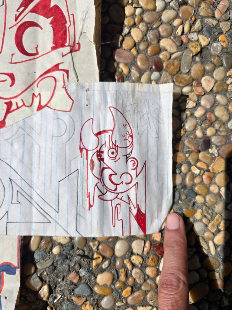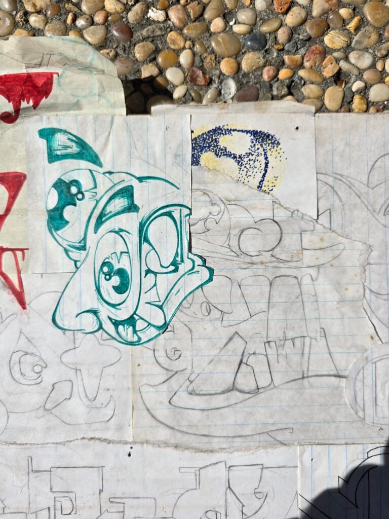 Looking through them now, I’m struck by how many of the instincts that shape my work today were already present. Repetition, layered forms, bold line work, and an interest in structure all show up in these early drawings. At the time, they were simply experiments — ways of filling pages, responding to hip-hop culture, graffiti, and the visual language of the streets and neighborhoods around me.