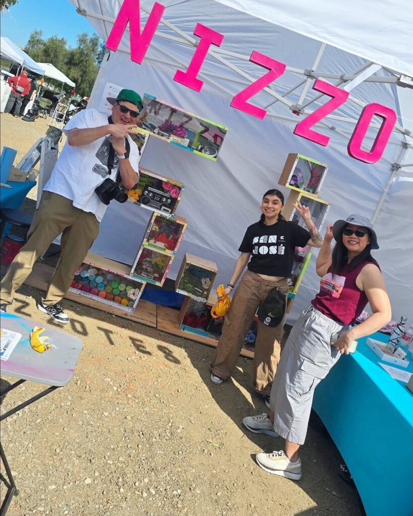 Originally co-created with residents during SJ Day in 2025, the geometric “SJ” letter forms are constructed using at least 75% reused and reclaimed materials. The front surfaces are partially enclosed with plexiglass, revealing interior objects that reference personal and cultural memory — analog headphones, Walkmans, boomboxes, spray cans, artificial flowers, and artifacts from everyday life and creative culture from the 1980s and 1990s.